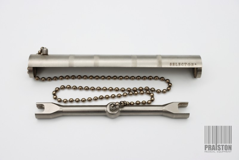 - Autoklawowalny klucz do montażu na łańcuszku, wraz z podstawą,