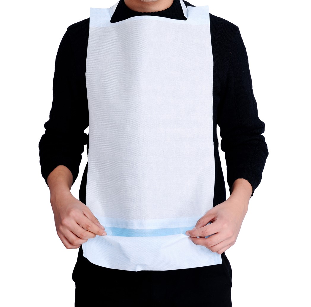 Śliniak jednorazowego użytku wykonany z chłonnego papieru pokrytego wodoodporną folią.