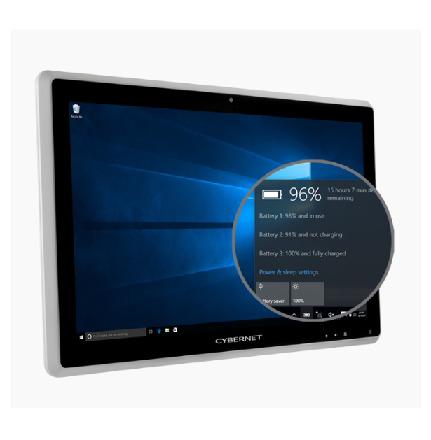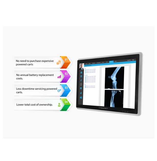 Te komputer przeznaczony jest do wózków medycznych bez zasilacza. Wymienne baterie zapewniają do 16 godzin pracy na jednym ładowaniu.