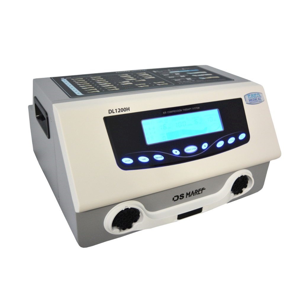 DL1200H to wysokiej klasy profesjonalne urządzenie do masażu limfatycznego do zastosowań w medycynie i odnowie biologicznej. Aparat obsługuje mankiety 12-komorowe z komorami zachodzącymi na siebie. Każda komora posiada własny zawór. Możliwa praca na 1 lub 2 mankietach jednocześnie. Wszystkie ustawienia aparatu widoczne są na wyświetlaczu dotykowym. Aparat posiada 8 programów masażu. Ciśnienie można ustawić osobno w każdej z 12 komór mankietu. Czas pozostawania powietrza w mankiecie ustawiany funkcją HOLD. Czas przerwy pomiędzy jednym napełnieniem mankietu a następnym ustawiany funkcją INTERVAL. Funkcja Zapis (Save) umożliwiająca zapis wartości ustawienia, aby była dostępna po następnym wyłączeniu i włączeniu urządzenia. Funkcja Reset służąca do przywrócenia domyślnej wartości.