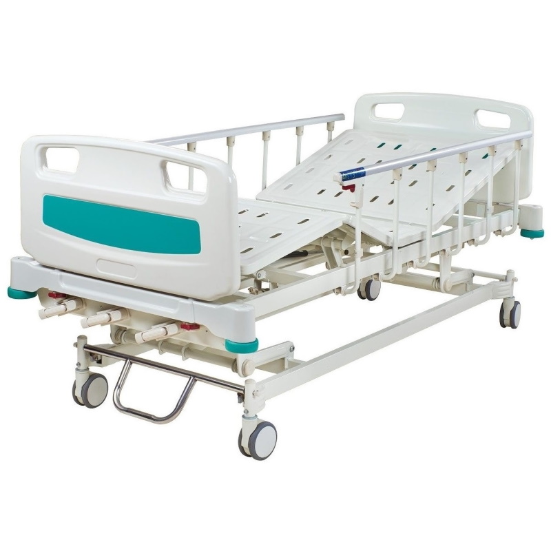 Łóżko manualne wyposażone w mechanizm śrubowy służący do regulacji funkcji leża łóżka, dzięki czemu zapewnia maksymalny komfort pacjentowi oraz ułatwia pracę personelowi medycznemu.