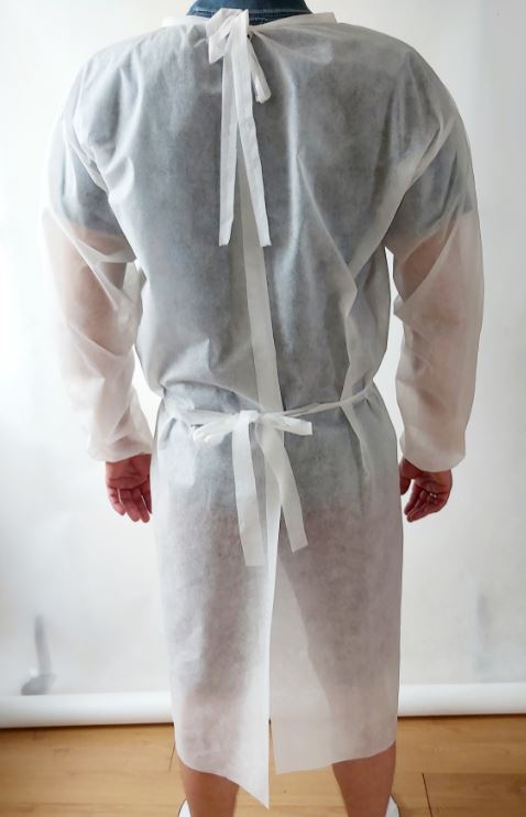 - Jednorazowy fartuch fizelinowy w kolorze białym i jasnozielonym.