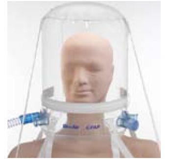 Hełm do nieinwazyjnej wentylacji mechanicznej, który można stosować w trybach PSV-ASB, BiPAP i CPAP. Sześć złącz ISO umieszczonych na usztywnionym pierścieniu zwiększa skuteczność, praktyczność i wygodę. Podłączenie do usztywnionego pierścienia zmniejsza zwłokę reakcji wyzwolenia wdechu.