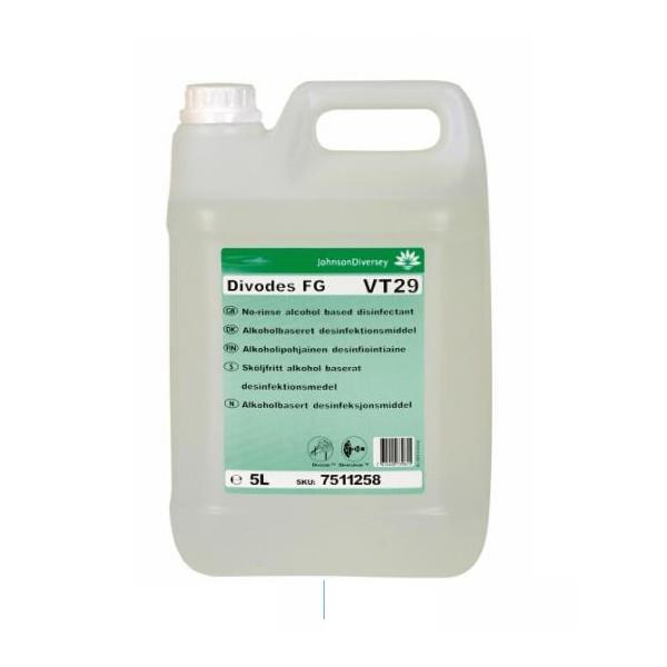Działanie preparatu opiera się na synergizmie dwóch izomerycznych form alkoholu propylowego. Zdezynfekowane preparatem Divodes FG powierzchnie, urządzenia i sprzęty nie wymagają płukania. Preparat w krótkim czasie odparowuje ze zdezynfekowanej powierzchni, a zdezynfekowana powierzchnia długo zachowuje czystość mikrobiologiczną.