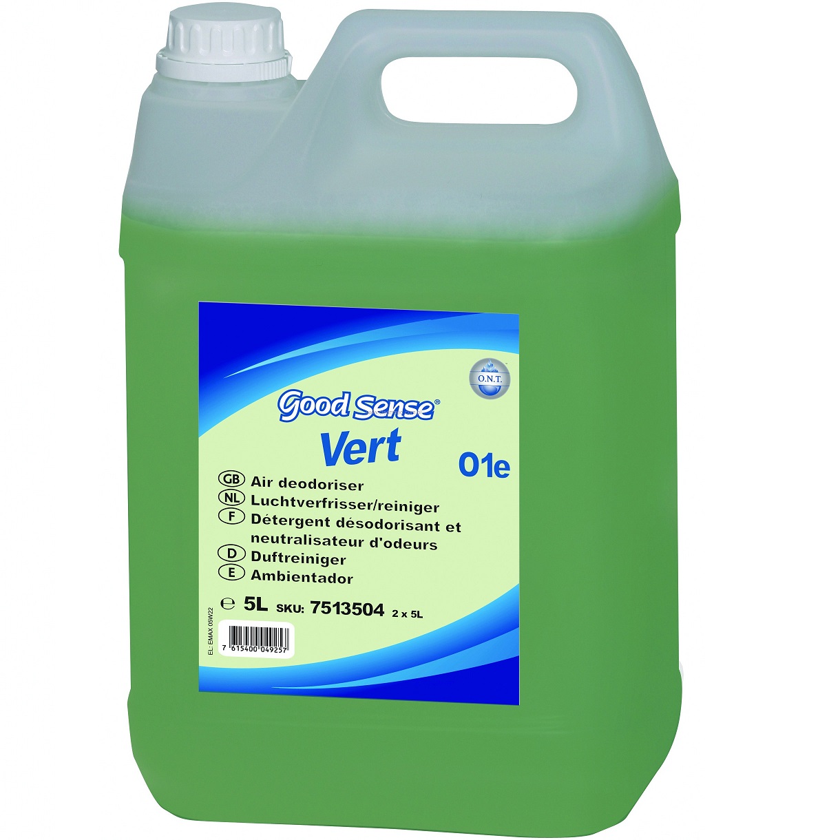 Good Sense Vert jest zapachowym preparatem czyszczacym, odtłuszczajacym, nie tworzacym powłok. Preparat posiada zapach zielonego jabłka stworzony w oparciu o technologie neutralizacji zapachów O.N.T. Polecany jest do czyszczenia podłóg wodoodpornych, niezabezpieczonych powłokami oraz wszystkich powierzchni wodozmywalnych. Skutecznie i długotrwale (4 do 8 godzin), neutralizuje nieprzyjemne zapachy np. nikotyny oraz takie, które mozna napotkac w toaletach.