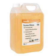 Suma Gloss K8 to płynny preparat do namaczania, którego formuła szczególnie nadaje się do usuwania trudnych plam ze sztućców, naczyń i różnego rodzaju przedmiotów wykonanych ze srebra. Zawiera mieszaninę substancji zapobiegających osadzaniu kamienia, a także alkalia umożliwiające usuwanie zasuszonych resztek pokarmu. Suma Gloss K8 może być używany również do usunięcia nalotu i zmatowienia z przedmiotów srebrnych. Połączenie folii aluminiowej oraz srebrnych przedmiotów w roztworze produktu zapoczątkowuje reakcję chemiczną usuwającą śniedź.