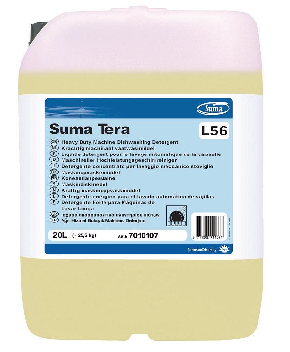 Suma Tera L56 to wysoce skoncentrowany, alkaliczny, płynny preparat myjący przeznaczony do maszynowego mycia naczyń do wszystkich rodzajów zmywarek przemysłowych. Preparat doskonale usuwa zabrudzenia w warunkach wody o średnim i wysokim stopniu twardości.