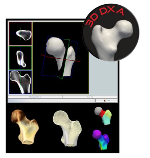 Wszystkie densytometry serii Stratos wspierają rewolucyjną technologię 3D-DXA umożłiwiającą wykonanie rekonstrukcji badania densometrycznego na modelu 3D kości udowej.