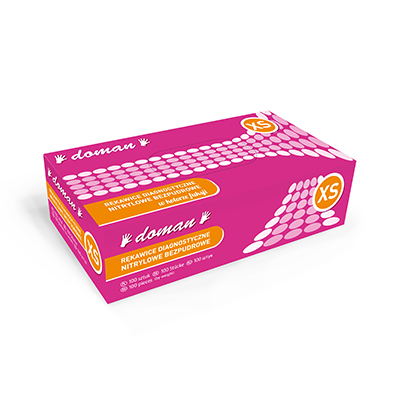 Rękawiczki bezpudrowe z dobrej jakości nitrylu, z rantem, kolor fuksji.