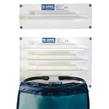 Wieszak ścienny przeznaczony do przechowywania 1 lub 4 fartuchów miednicowych.