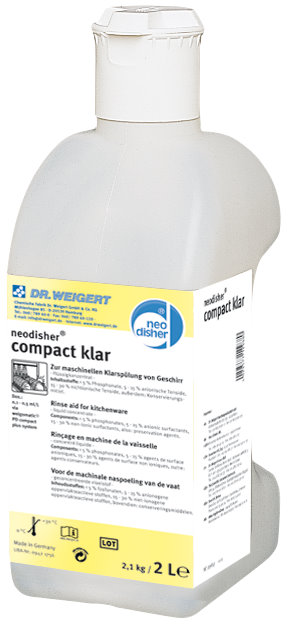 Środek płuczący – koncentrat. Bardzo wydajny. Odpowiedni do zastawy z porcelany, stali nierdzewnej i tworzyw sztucznych. Dozowany za pomocą urządzenia weigomatic PD compact plus. Butelka 6 x 2 L
