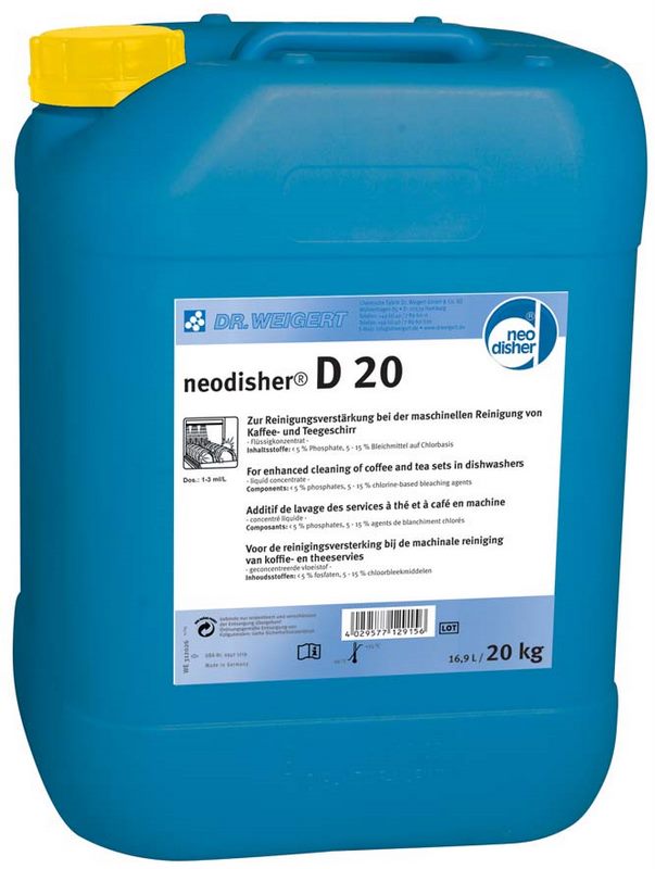 Komponent wzmacniający działanie myjące. Do usuwania trwałych osadów kawy i herbaty. Odpowiedni do stosowania w systemie dozowania komponentów razem z neodisher Alka 220. Kanister 20 kg