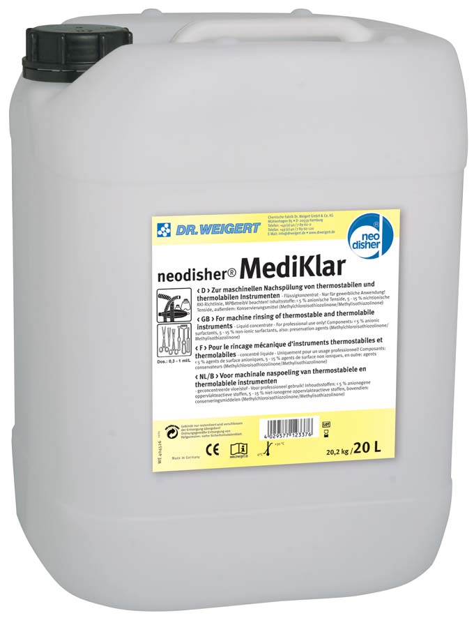 Środek płuczący, płyn. Do szybkiego, bez zaciekowego płukania poprawiającego suszenie po maszynowym myciu i dezynfekcji endoskopów elastycznych. Znacząco skraca czas suszenia. Pojemność: 5l, 20l, 200kg.