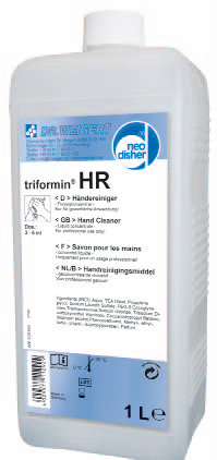 Płynne mydło do rąk. Przyjemny zapach, wysoko skuteczny, nawet do mocno zabrudzonych rąk. Odpowiedni do rutynowego mycia rąk. Łagodny dla skóry, dermatologiczna ocena. Używany poprzez dozownik mydła triformin. Pojemność: Butelka 10x1L, kanister 4X5L