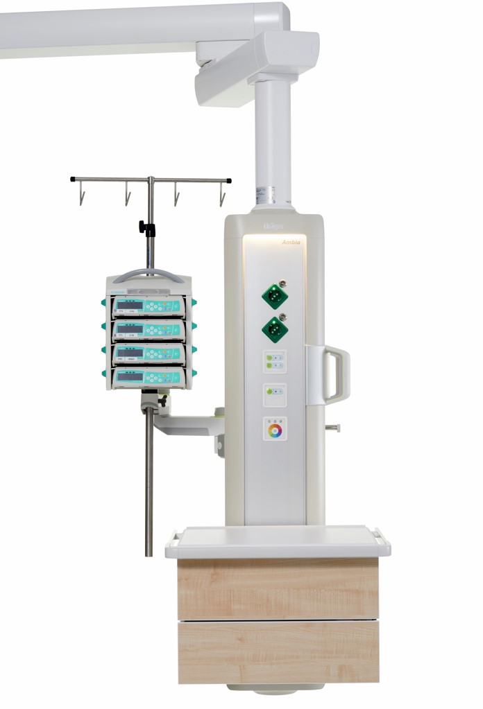 Odciążenie personelu i poprawa samopoczucia pacjentów to istotne założenia w procesie projektowania Dräger Ambia®. Sufitowa jednostka zasilająca oferuje więcej miejsca na zamocowanie aparatury medycznej dzięki innowacyjnej koncepcji montażu, zgodnie z którą zmiany na stanowisku pracy mogą być w prosty sposób dokonywane na miejscu, co pozwala na szybkie i łatwe dostosowanie jednostki zasilającej do indywidualnych wymagań. Zaokrąglone krawędzie ułatwiają proces czyszczenia, a tym samym zapewniają lepszą ochronę przed zakażeniami na oddziale intensywnej terapii. Liczne warianty kolorystyczne i oświetleniowe tworzą przyjazną atmosferę w salach, gdzie przebywają pacjenci.