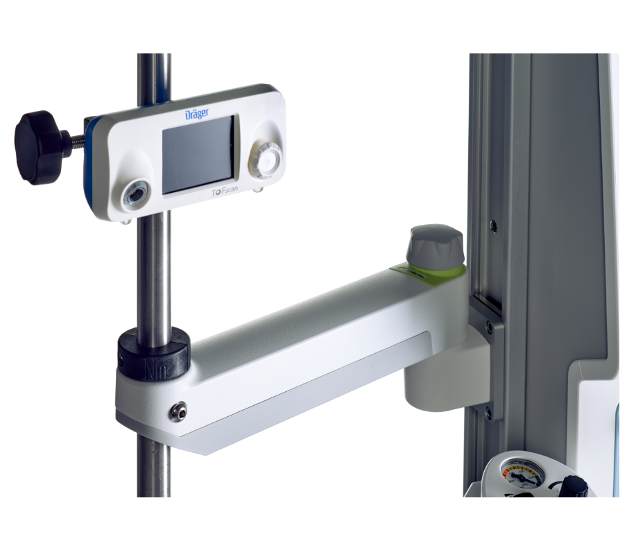 TOFscan jest prostym w użyciu urządzeniem. Ponieważ pracuje zarówno na zasilaniu akumulatorowym, jak i sieciowym, może być używany bez przewodu sieciowego i łatwo przenoszony. Zacisk montażowy umożliwia optymalne zamocowanie do pręta lub poręczy łóżka.
