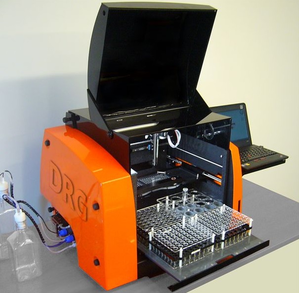 ElizaMat 2 X firmy DRG to nowoczesny w pełni automatyczny otwarty system do oznaczania testów ELISA i CLIA. Urządzenie łączy w sobie funkcje czytnika, płuczki, wytrząsarki oraz inkubatora. Posiada również bardzo wydajne ramię pipetujące i system odprowadzania ścieków.