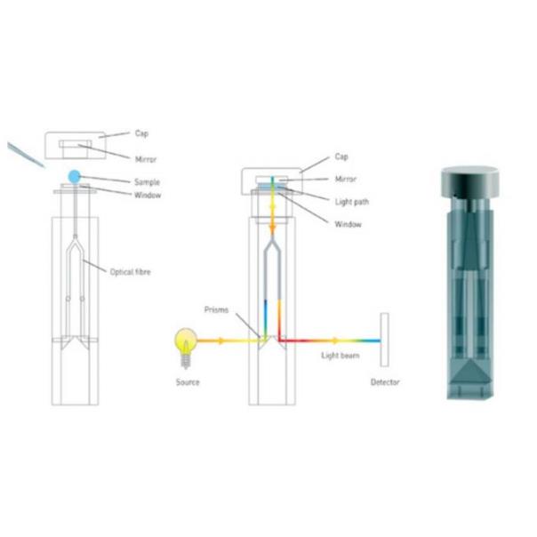 Najmniejsza wymagana objętość próbki wynosi 0,5 µL. Wystarczy pipetą nanieść mikroobjętość, wykonać pomiar, a następnie port przetrzeć w celu wykonywania kolejnych pomiarów. Halo DNAmaster może być także wykorzystywany jako konwencjonalny spektrofotometr dla pomiaru w standardowych kuwetach (10 mm).
