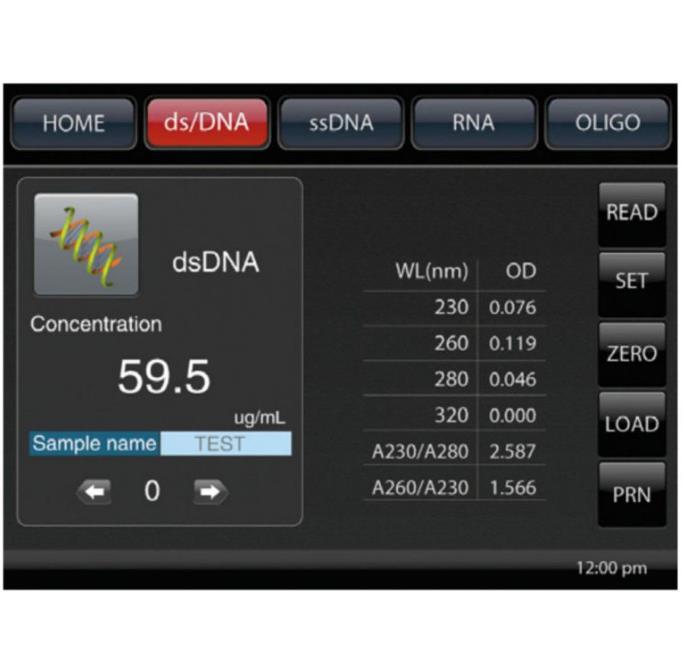 Funkcje spektrofotometru Halo DNAmaster umożliwiają ilościową analizę kwasów nukleinowych. Należy wybrać typ kwasu nukleinowego: dsDNA, ssDNA, RNA, bądź oligonukleotydy, a następnie wykonać pomiar absorbancji, przy wcześniej wyznaczonej długości fali, który jest bezpośrednio przeliczany na jednostki stężenia. Limit detekcji dla dsDNA wynosi 20 ng/µL.