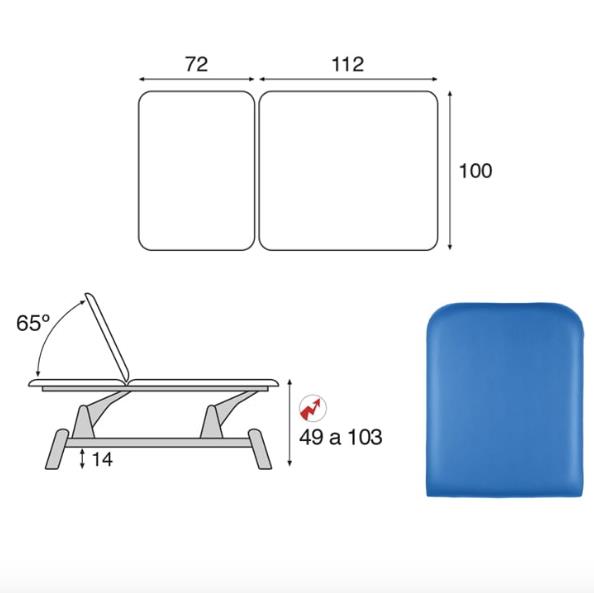 Regulację wysokości stołu do terapii Bobath i Vojty zapewnia szybko działający siłownik elektryczny o specjalnie zwiększonej szybkości. Stół do terapii Bobath i Vojty jest posiada szerokość 100 cm a długość 180 cm (sekcja zagłówka 72 cm a sekcja tułowia 112 cm). Sekcja zagłówka stołu do terapii Bobath i Vojty regulowana jest za pomocą siłownika elektrycznego. Leże stołu do masażu zostało wypełnione specjalną pianką poliuretanową o grubości 5 cm i twardości II-go stopnia. Stoły do terapii Bobath i Vojty posiadają bakteriostatyczną tapicerkę o klasie ognioodporności M2.