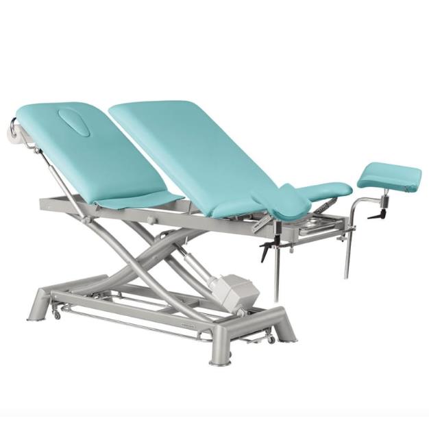 C7981 to elektryczny 3-częściowy stół ginekologiczny na konstrukcji krzyżakowej. Posiada wygodną szybką elektryczną regulację wysokość HIGH SPEED za pomocą ramy sterującej. Regulacja oparcia odbywa się za pomocą sprężyny gazowej. Regulacja siedziska i podnóżka odbywa się za pomocą rastomatu. Podkolanniki regulowane są we wszystkich płaszczyznach. W standardowym wyposażeniu znajdują się kółka jezdne. Korzystanie ze stołu ginekologicznego jest w przypadku niektórych czynności dużo wygodniejsze niż z fotela ginekologicznego (np. podczas badań radiologicznych, takich jak ultradźwięki, badań endoskopowych, czy biopsji). Warto rozważyć wypróbowanie innych rozwiązań niż standardowy fotel ginekologiczny.
