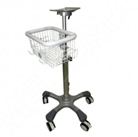 Stabilny stojak na podstawie jezdnej z koszykiem na akcesoria.