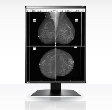 5-megapikselowy monitor monochromatyczny z cienkimi ramkami, przeznaczony do wyświetlania badań piersi takich jak mammografia i tomosynteza.
