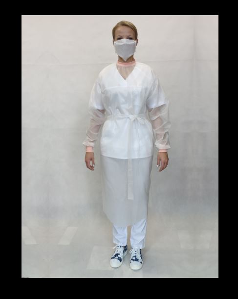 Wysokiej jakości fartuch ochronny wykonany z włókniny poliestrowo-wiskozowej, posiada certyfikat AEKO-TEX 100.