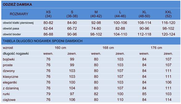 Dostępne kolory i rozmiary: