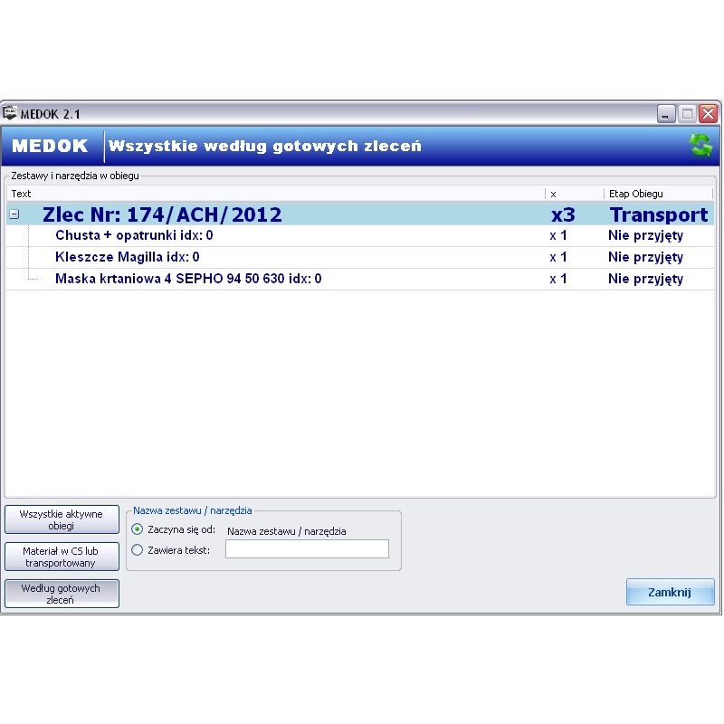 System komputerowy należący do rodziny systemów MEDOK - serii stworzonej dla zaplecza technicznego szpitala.