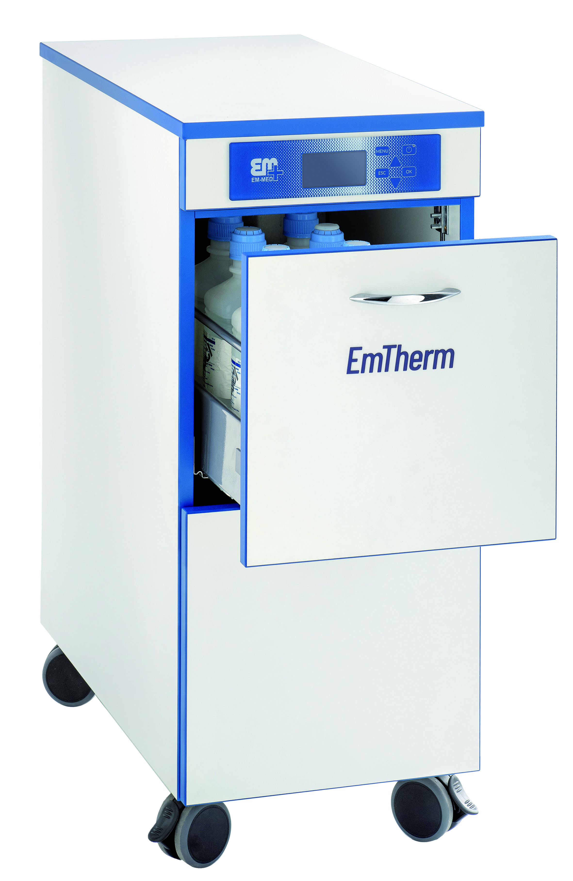 - Urządzenie mobilne, umożliwiające łatwy i bezpieczny transport. Wyposażone w 4 kółka (2 z opcją blokady).