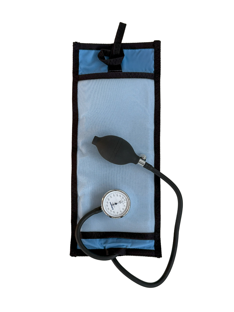 pomocą taśm velcro. System zamknięcia suwaka pozwala na regulację i obserwację przepływu płynu w aparacie do przetoczeń.