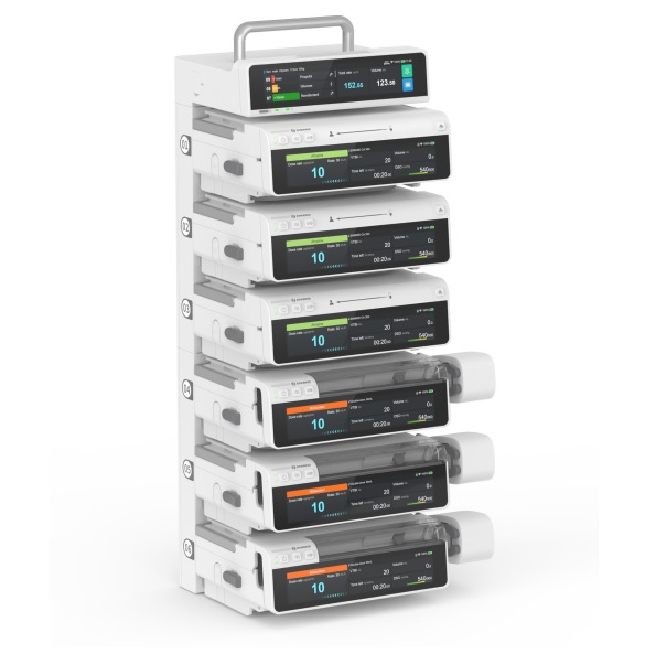 - Obsluguje infuzję łącząc wiele pomp w dowolnej kolejności umożliwiając ciągłą kontynuację infuzji.