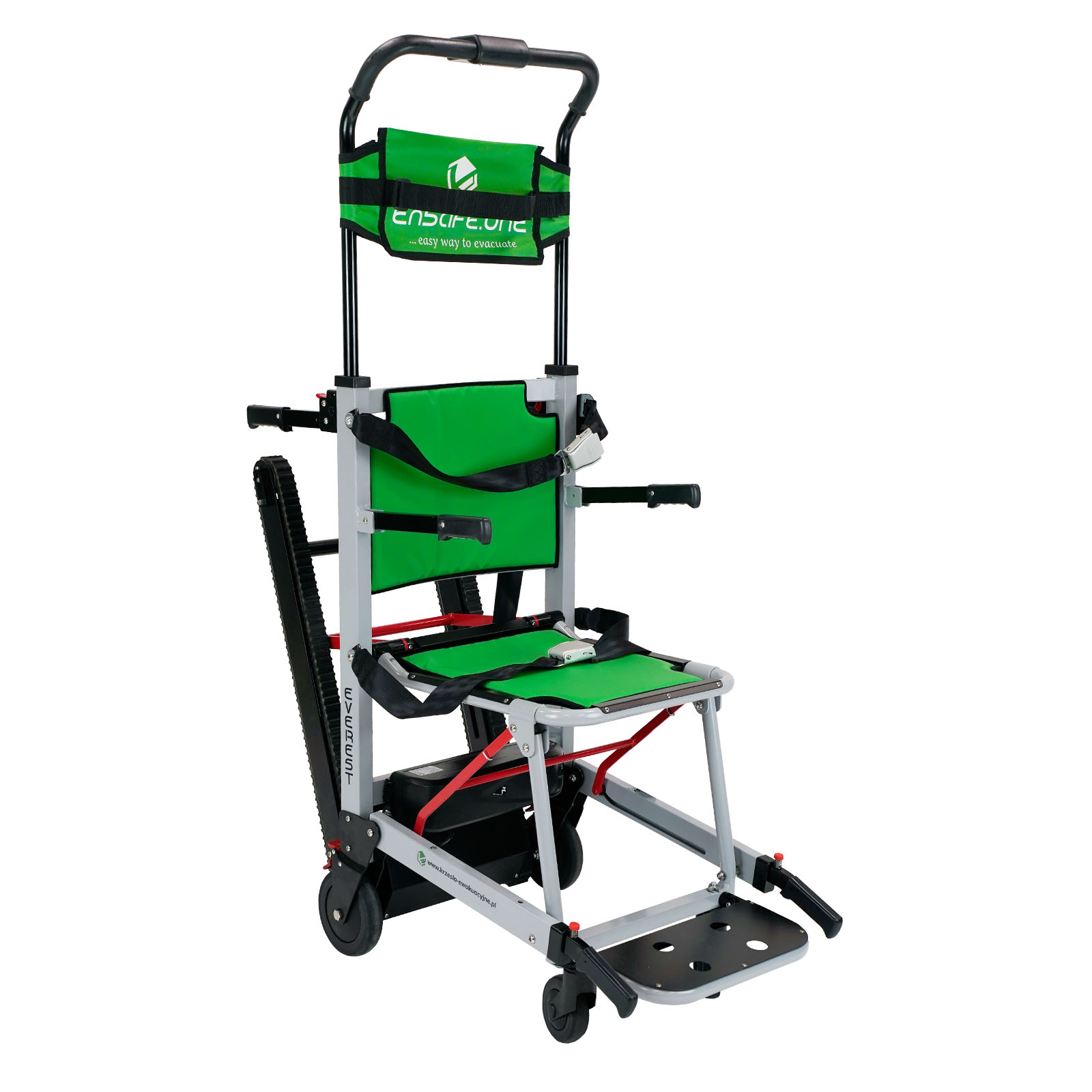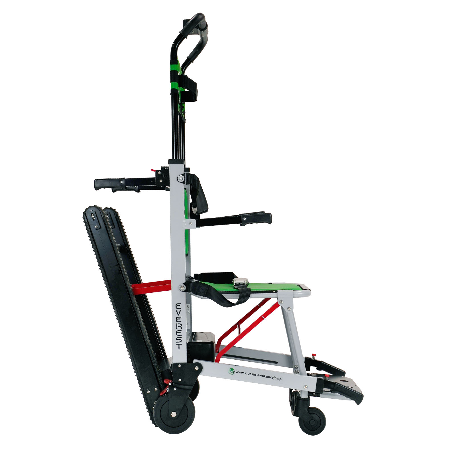 Krzesło ewakuacyjne EVEREST jest krzesłem z napedem elektrycznym. Pozwala na ewakuacje osoby w dół i w góre po schodach w sytuacjach awaryjnych, a takze po poziomym podłozu.