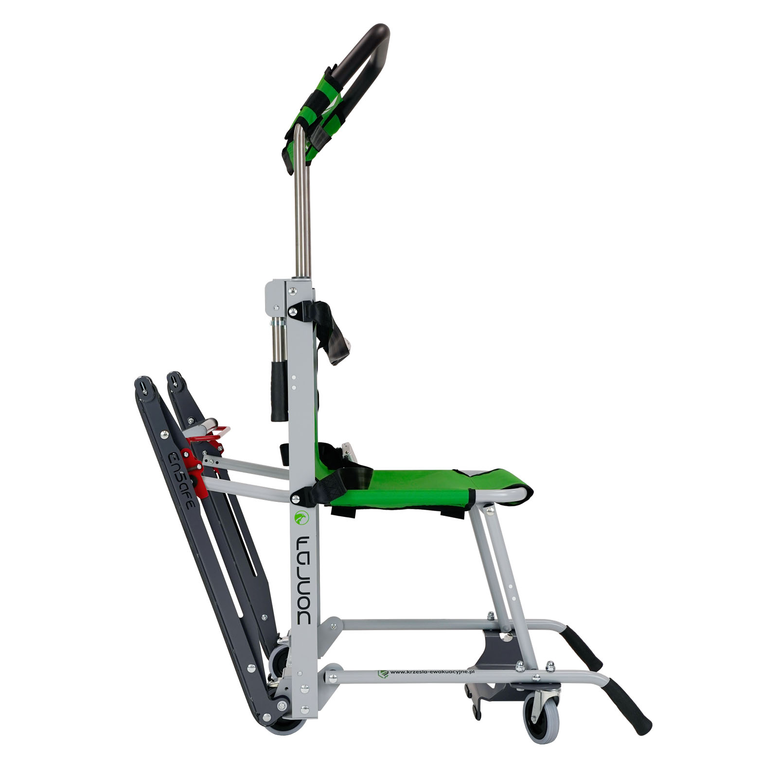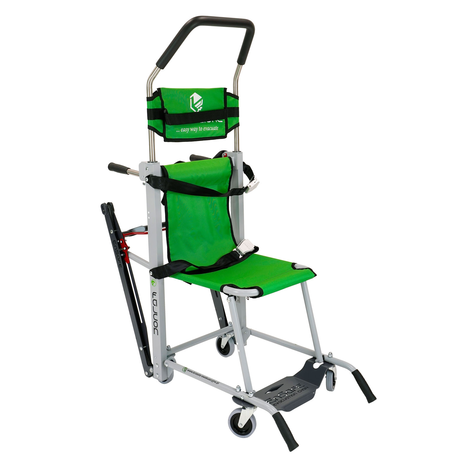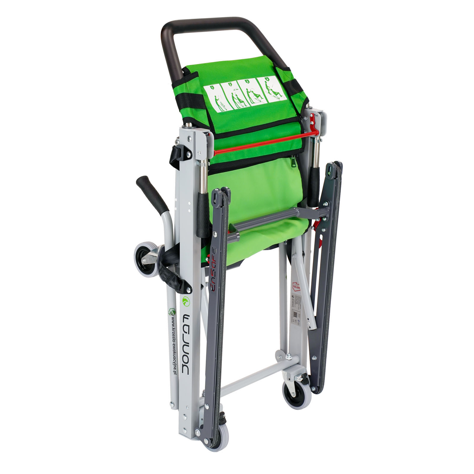 Krzesło ewakuacyjne FALCON pozwala na ewakuacje osoby w dół przez jednego operatora oraz w góre po schodach przez dwóch operatorów w sytuacjach awaryjnych.