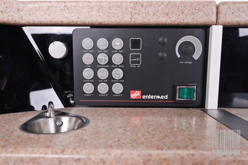 - W unicie ENTERMED ERGOMED 600 zastosowano najwyższej jakości materiały, między innymi drewnianą obudowę segmentu oraz blat wykonany z luksusowego marmuru MARLAN. Dzięki temu urządzenie posiada elegancką stylistykę i jest bardzo wydajne. Budowa unitu jest modułowa. Składa się z dwóch segmentów stojących oraz dwóch segmentów wiszących szafek ściennych.