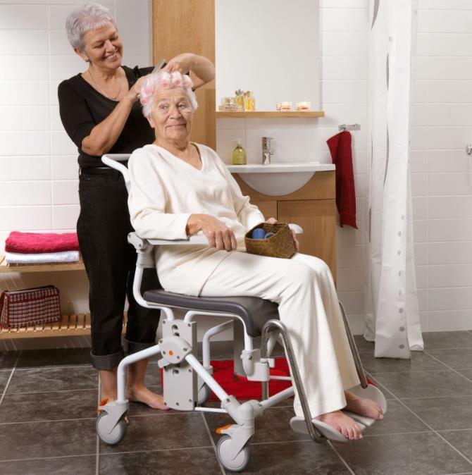 Etac Swift Mobile - wózek toaletowo-prysznicowy z 24" kołami tylnimi do 160 kg