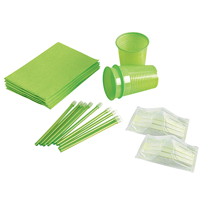 Zestaw jednorazowy dla pacjenta – serwety, kubki, ślinociągi + maseczki