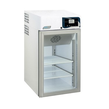 Szklane drzwiczki: na zawiasach, aluminiowa ramka wokół szyby oraz trzy warstwy szkła hartowanego z próżnią pomiędzy warstwami w celu zwiększenia izolacji. Drzwi są wyposażone w gumową, magnetyczną uszczelkę aby zapewnić idealne hermetyczne zamknięcie. Uchwyt wykonany jest z aluminium, zintegrowanego z profilem drzwi na całej wysokości dla większego komfortu użytkowania. Drzwi są również wyposażone w urządzenie automatycznie zamykające chłodziarkę, jeśli drzwi są otwarte pod kątem mniejszym niż 90 °, oraz dyszę zatrzymującą wewnętrzną wentylację (aby ograniczyć straty temperatury wewnętrznej.