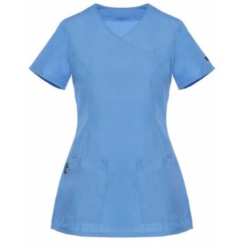 Bluza medyczna Diana damska, przeznaczona jest dla personelu medycznego. Bluza ma podnosić komfort pracy i zapewniać profesjonalny wizerunek. Została wykonana z materiału 50% poliester i 50% bawełna. Połączenie tych dwóch materiałów sprawia, że bluza medyczna nie podrażnia skóry i jest bardzo wytrzymała. Jest też delikatna dla skóry i przyjemna w dotyku. Sprawdza się nawet podczas intensywnej pracy. Dzięki bocznym rozcięciom bluza dopasowuje się do ruchów ciała. Dwie przednie kieszenie pozwalają schować wszystkie niezbędne przybory. Bluzka Diana jest taliowana, dzięki czemu dobrze leży na każdej sylwetce. Zapewnia wygodę i pełną swobodę ruchów. Dobrze znosi wielokrotne pranie, nie traci koloru i nie ulega zniekształceniom. Bluza ma dekolt w kształcie litery V, co nadaje jej eleganckiego wyglądu.