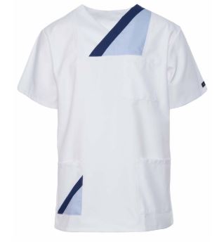 Bluzka medyczna Hanover to bluza męska wkładana przez głowę. Wykonana jest z 50% bawełna i 50% poliester. Cechuje ją wysoka jakość i sługa funkcjonalność. Posiada dwie praktyczne kieszenie po bokach oraz jedną na wysokości piersi, dzięki czemu jest miejsce na potrzebne akcesoria niezbędne do pracy. Delikatny biały kolor wnosi świeżość w codziennym wyglądzie. Krój bluzy jest bardzo prosty, a dzięki występującym wycięciom po bokach, bluza nie opina oraz daje pełną swobodę podczas wykonywania ruchów. Posiada dwukolorową wstawkę biało - szarą, co nadaje jej oryginalnego wyglądu. Idealnie nadaje się do długiej pracy, która wymaga wygodnego stroju. Bluza sprawdza się w 100%. Dostępna jest w wielu rozmiarach, a więc każdy znajdzie odpowiedni model dla swojej sylwetki. Stworzona dla lekarzy, kosmetologów czy pracowników SPA.