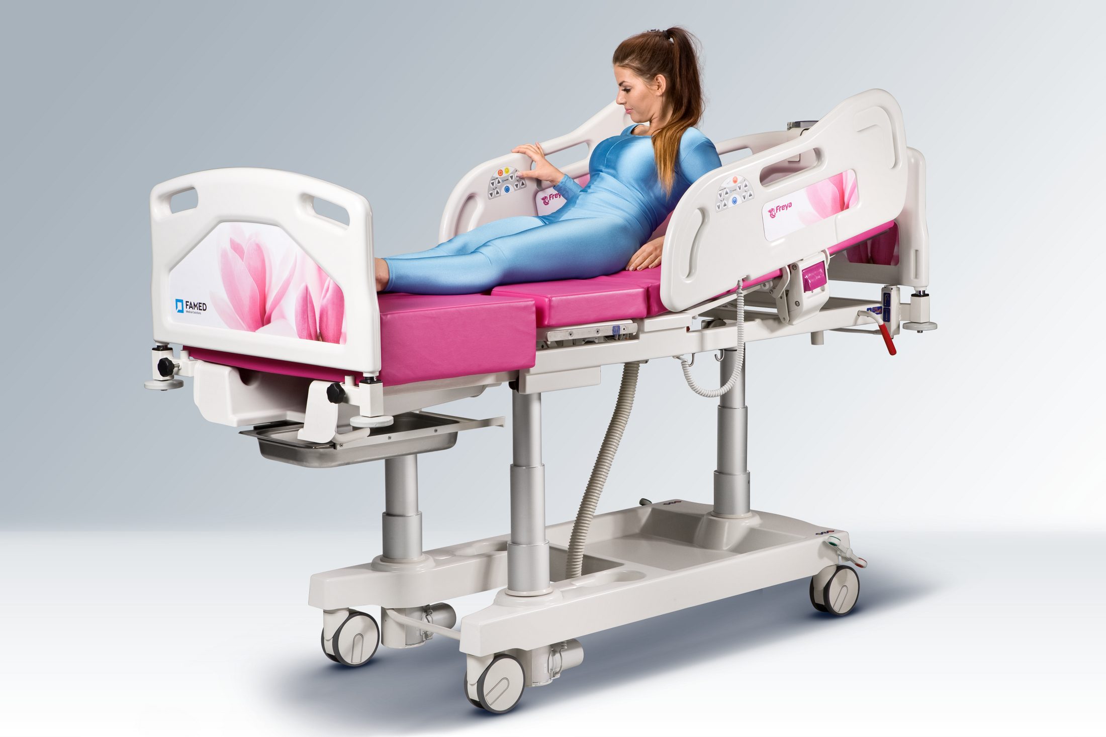 Łóżko porodowe Famed Freya może szybko przybrać swoją formę, przemiana z łóżka szpitalnego to kwestia kilkunastu sekund. Jest szerokie i wygodne, a w trakcie porodu pozwoli w wygodny sposób przyjąć wiele pozycji, m.in. pozycję kuczną z uchwytem, półsiedzącą, różne warianty pozycji siedzącej, pozycji tylnej, horyzontalnej, bocznej czy stojącej.