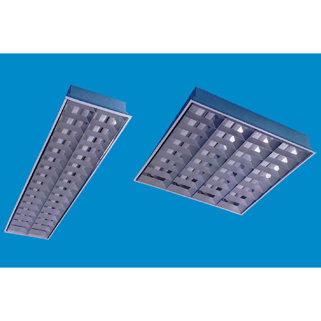 Oprawa świetlówkowa do oświetlania pomieszczeń. Korpus stalowy malowany proszkowo; raster i odbłyśnik aluminiowy. Przystosowana do wbudowania w sufit modulowy lub wielkopłytowy (RIGIPS). IP20, 3x18, 4x18, 2x36W, T8, EVG