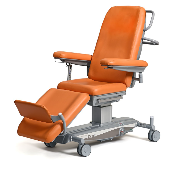 - Fotel posiada elektryczną regulację wysokości, segmentu oparcia pleców, segmentu siedziska, segmentu nóg oraz pozycji Trendelenburga, a także zaprogramowane pozycje (w tym reanimacyjną - CPR)