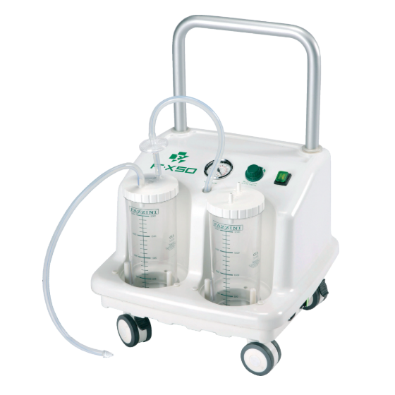 Ssak wyposażony jest w autoklawowalne dwa 2000ml lub 4000ml zbiorniki z zastawką p.przelewową, hydrofobowy filtr antybakteryjny , komplet przewodów silikonowych z łącznikiem i cewnik.