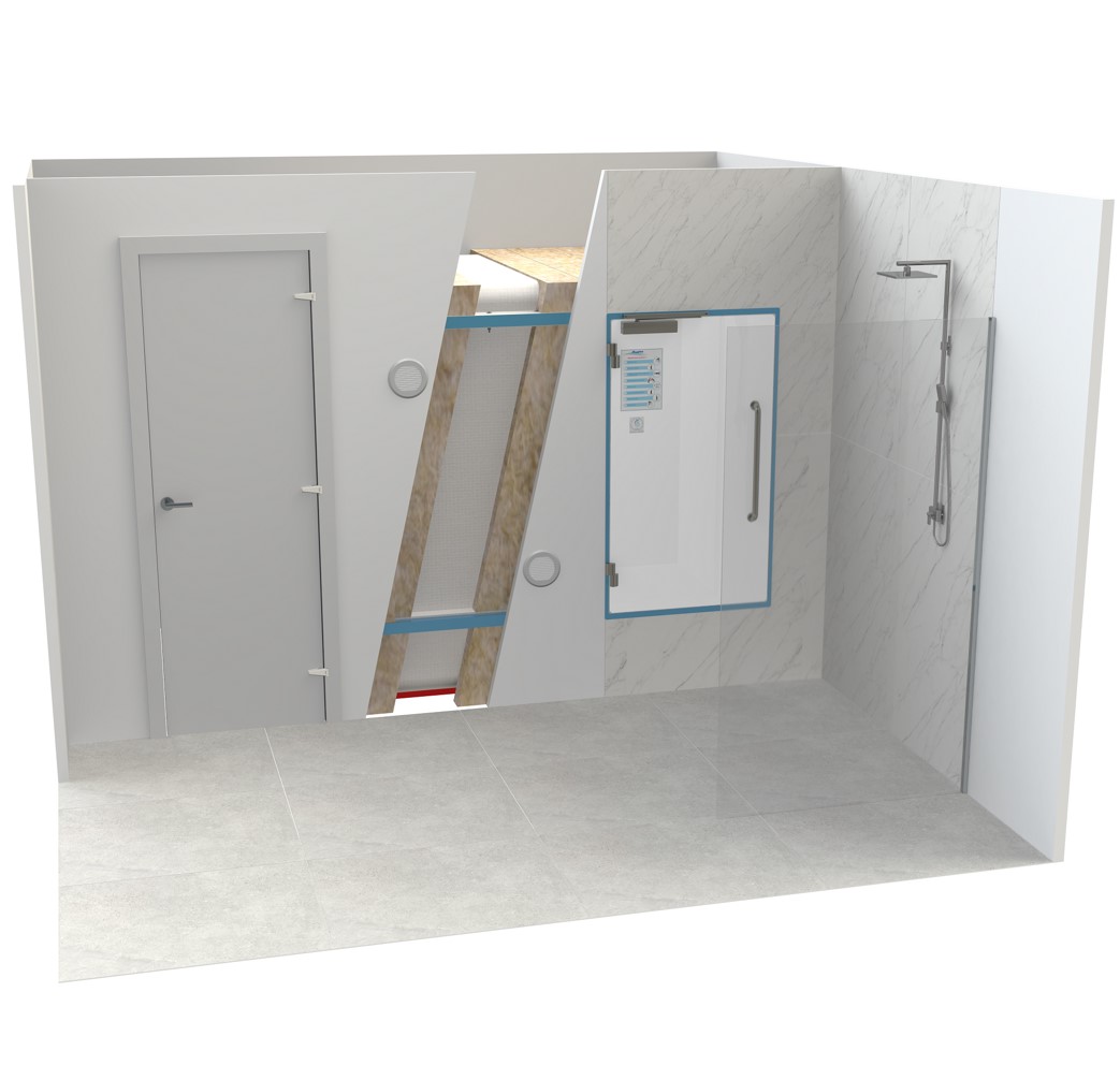 Modułowa budowa kabiny umożliwia montaż w niemal każdych warunkach lokalowych – także w istniejących obiektach z wąskimi korytarzami, klatkami schodowymi czy ograniczonym dostępem. Poszczególne elementy można wnieść osobno i złożyć bezpośrednio w docelowym pomieszczeniu, dzięki czemu całą kabinę da się dostarczyć nawet do lokalu, w którym drzwi wejściowe mają jedynie 80 cm szerokości. Takie rozwiązanie znacząco ułatwia instalację i minimalizuje ingerencję w infrastrukturę obiektu.