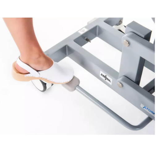 - Stół Hippo ma duże, podwójne koła jezdne aby łatwo można nim jeździć. Koło kierunkowe stabilizuje kierunek w trakcie jazdy. Kiedy chcemy go zablokować dźwignia nożna zablokuje wszystkie koła stabilizując stół.