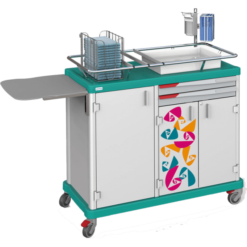 - Wózek dwu sekcyjny (prawa i lewa), składający się potrójnych drzwi
