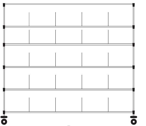 System MOSYS. Dostępne inne konfiguracje na życzenie klienta. Stelaż wyposażony w 6 półek (dzielonych na 4 części). Wysokość 1800 mm. Przeznaczony do sortowania, przechowywania i transportu pościeli i bielizny.