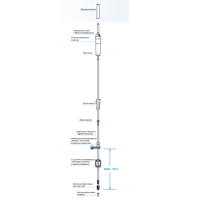 - Zacisk bezpieczeństwa chroniący przez swobodnym przepływem